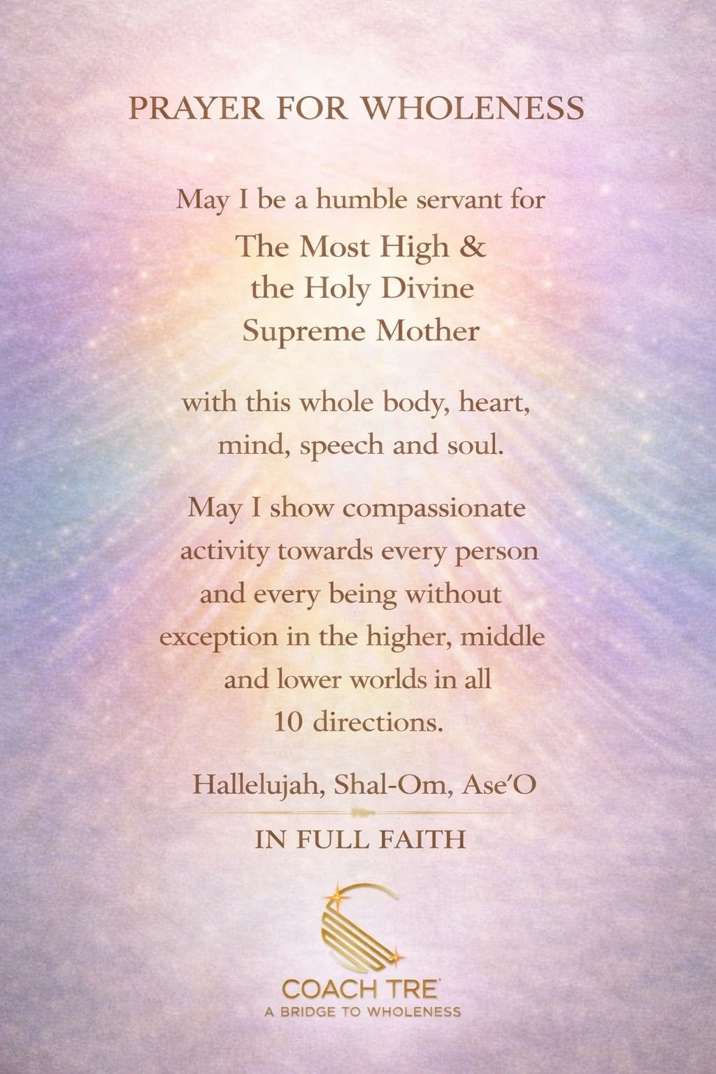The commitment is the Prayer for Wholeness, recited a minimum once daily for 21 days, no matter what.